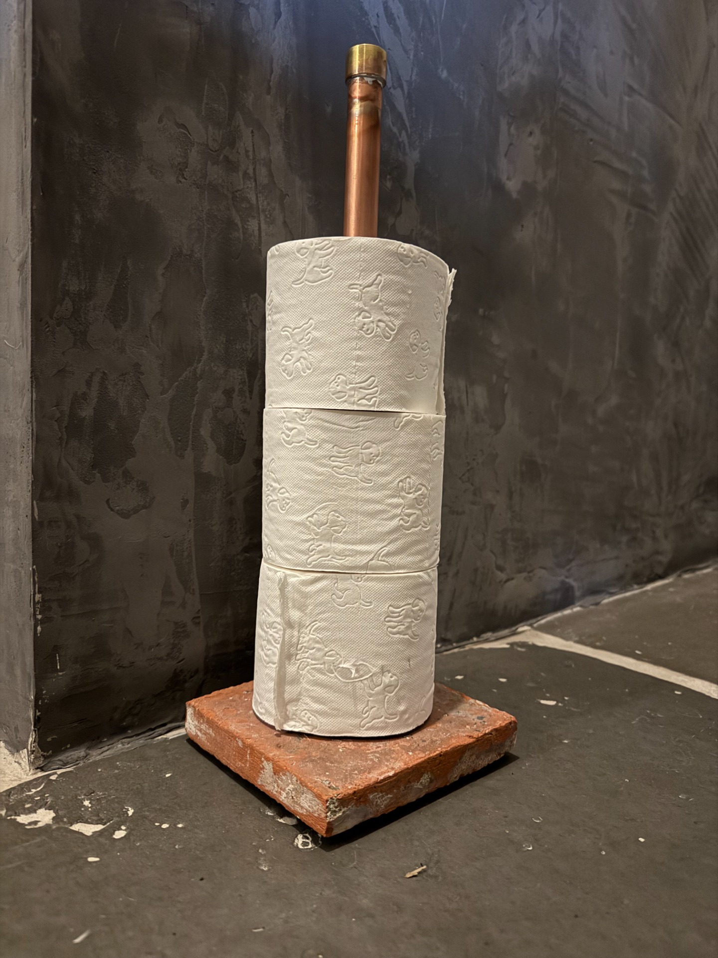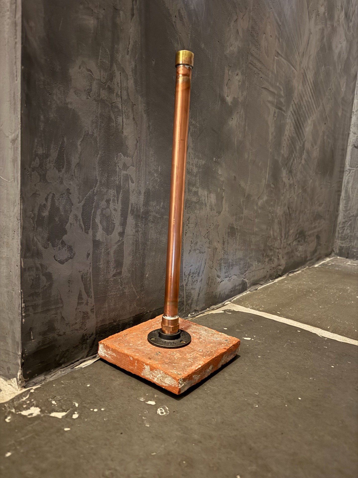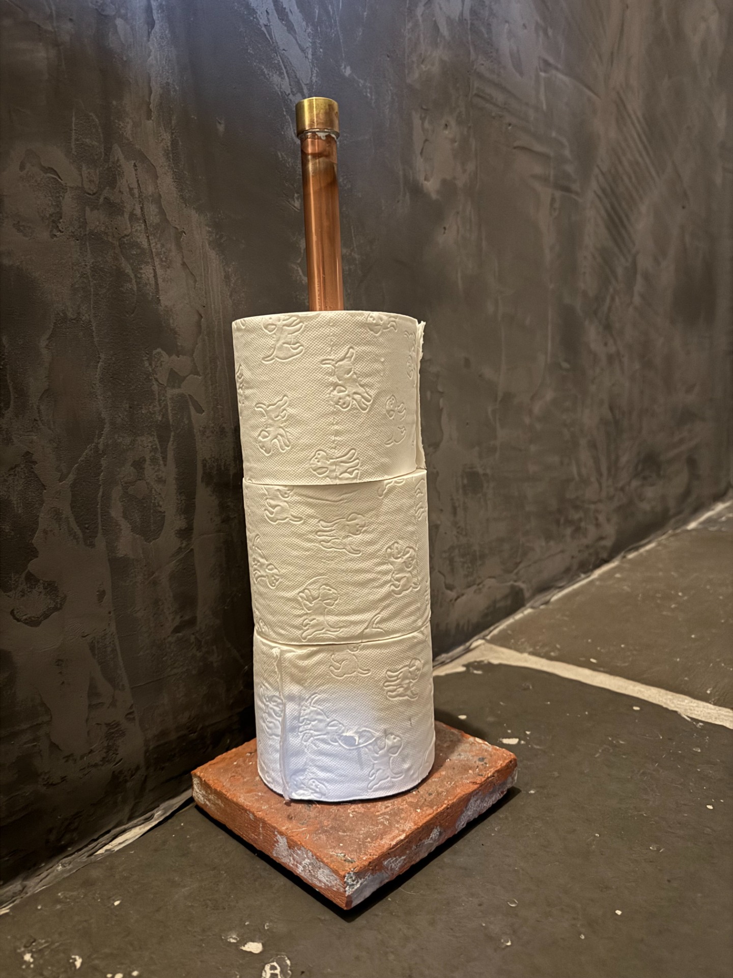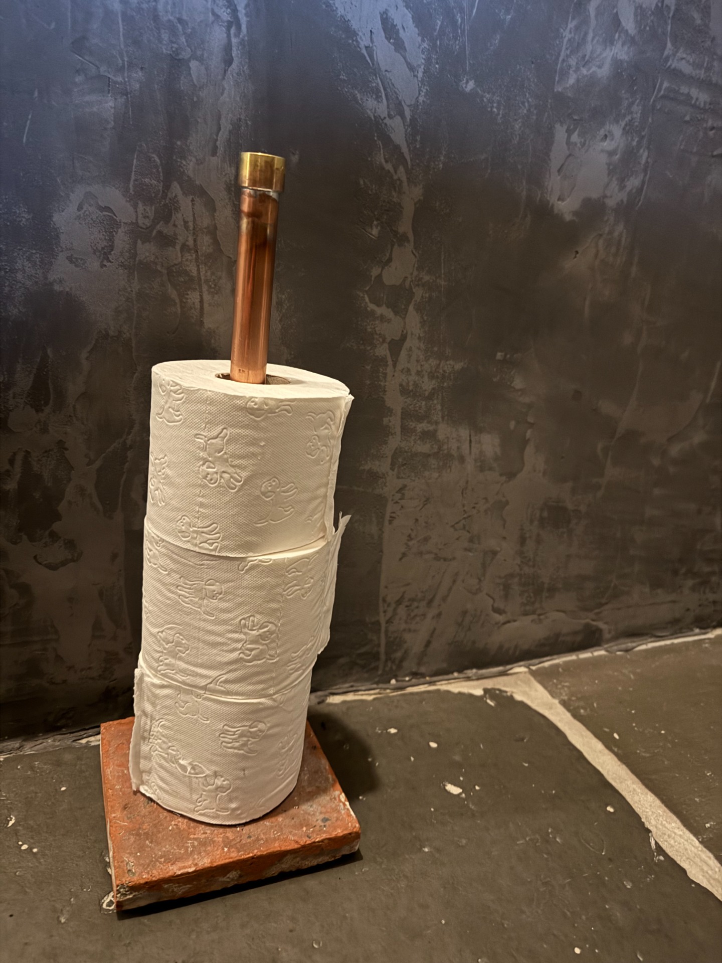 Deze mooie WC-rollen houder is 45cm hoog. Buisdikte 22 mm.De voet is een oude terracotta tegel (16 cm x 16 cm).